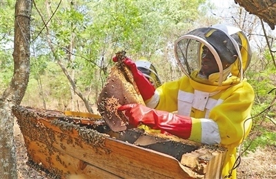 齊邦巴村如今已有500多戶(hù)農(nóng)戶(hù)加入蜂蜜合作項(xiàng)目。村里的蜂農(nóng)召集人貝納德告訴記者,一個(gè)蜂箱一年收蜜一次,每次能采出25至30公斤蜂蜜,10個(gè)蜂箱加起來(lái)可以帶來(lái)約5000贊比亞克瓦查(約合222.5美元)的收入?!爸袊?guó)市場(chǎng)很大,與中方合作提高了村民的收入。”貝納德說(shuō)。