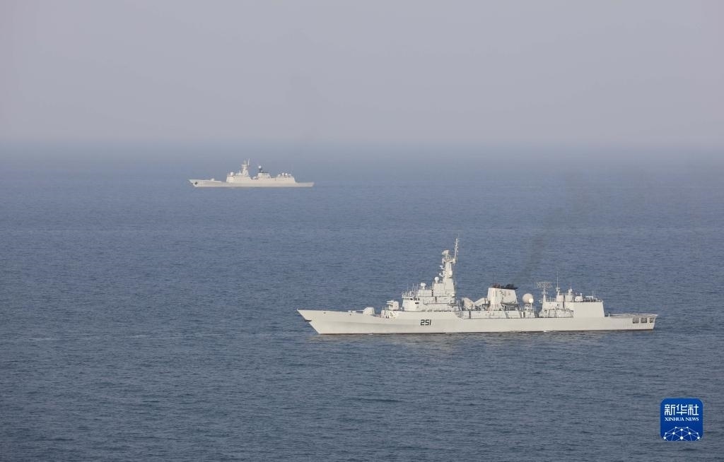中巴“海洋衛(wèi)士-3”海上聯(lián)合演習(xí)在阿拉伯海北部海空域舉行,雙方艦艇組織編隊運動(11月14日攝)。新華社發(fā)(姜霞攝)
