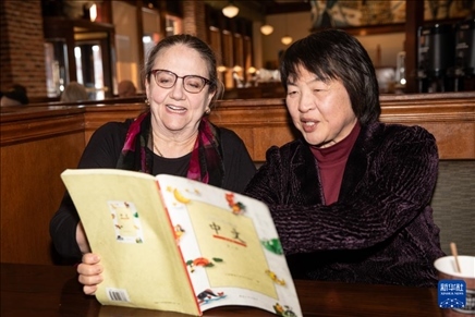 1月9日,在美國得克薩斯州達拉斯,朱麗葉·托馬斯跟著她的老師李鍵學習中文。新華社發(fā)(田丹攝)