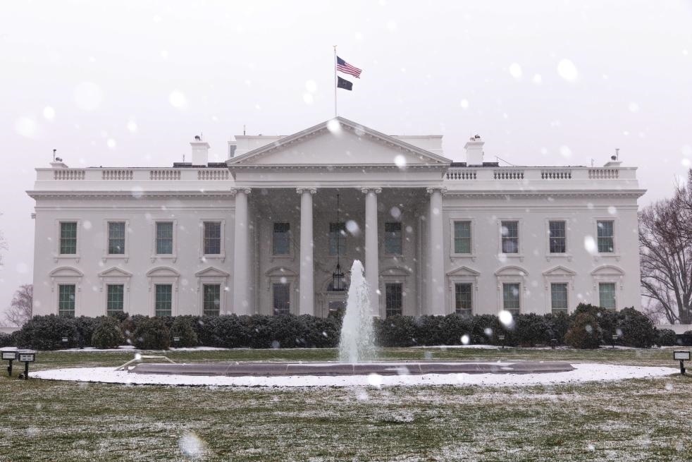 ?這是1月15日在美國(guó)首都華盛頓拍攝的雪中的白宮。新華社發(fā)(阿倫攝)