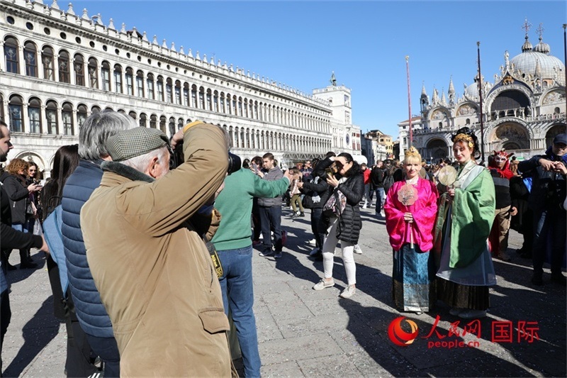 隊伍到達圣馬可廣場后,活動正式開始。出席活動的中國駐米蘭總領(lǐng)事劉侃表示,活動為威尼斯狂歡節(jié)增添了中國文化元素,是不同文明交流互鑒的生動體現(xiàn)。威尼斯副市長瑪爾表示,感謝華人為當(dāng)?shù)厣鐣l(fā)展所作貢獻,表示將進一步發(fā)展與蘇州的友好關(guān)系。