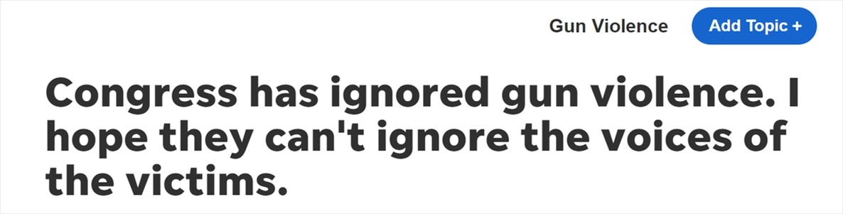 更為不幸的是,美國(guó)國(guó)會(huì)始終未能保護(hù)民眾免于遭受這種恐怖經(jīng)歷,他們對(duì)此選擇無(wú)視,無(wú)視美國(guó)的槍支暴力頑疾。