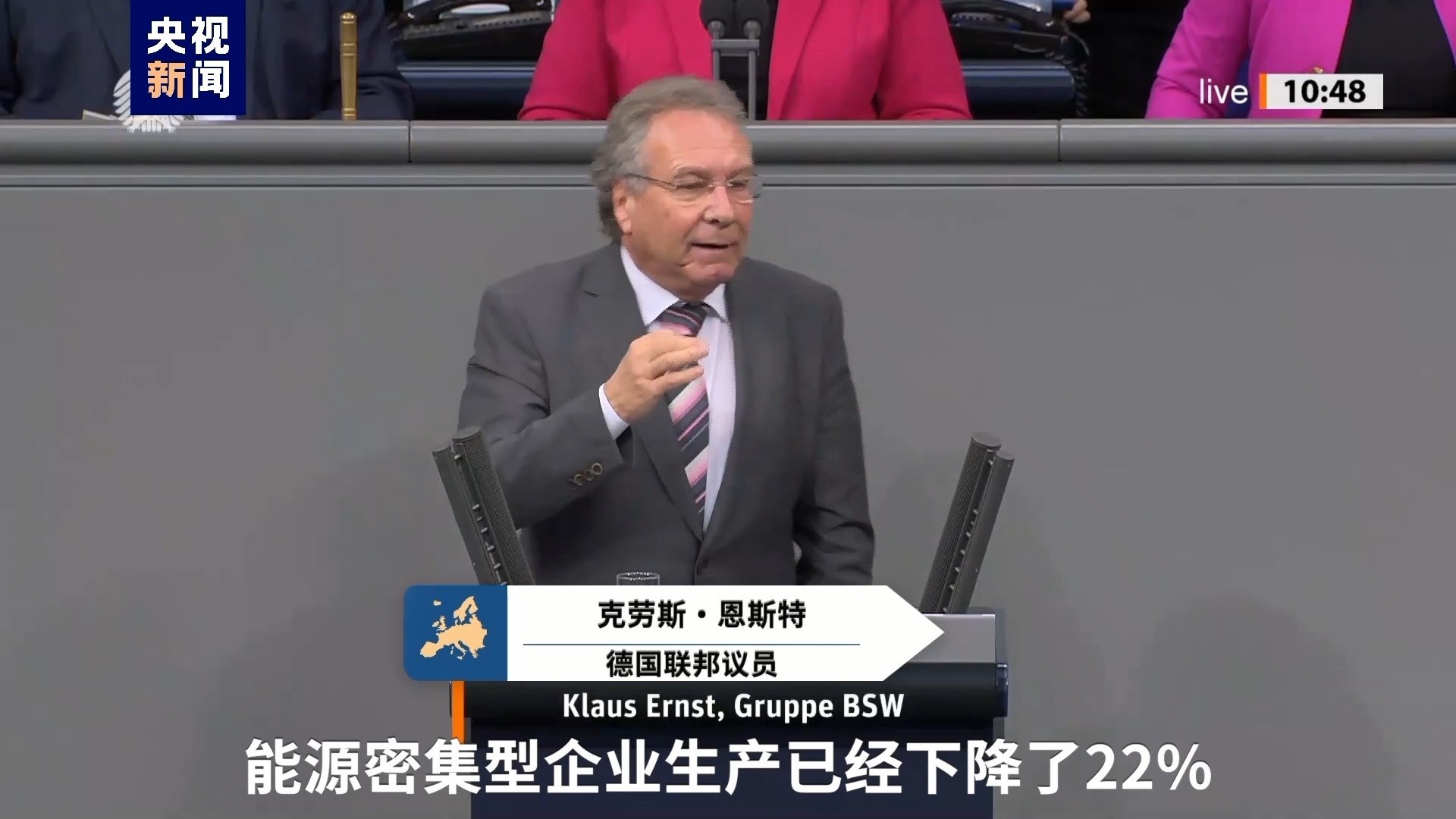 德國(guó)聯(lián)邦議員 克勞斯·恩斯特:我們確切地知道,能源密集型企業(yè)生產(chǎn)已經(jīng)下降了22%。這個(gè)下降并不是憑空捏造的。我們目前對(duì)于能源密集型企業(yè)的能源定價(jià)已經(jīng)達(dá)到了它們無(wú)法承擔(dān)、不愿支付的水平。因此,它們自然會(huì)嘗試將生產(chǎn)轉(zhuǎn)移到其他國(guó)家,例如美國(guó)。