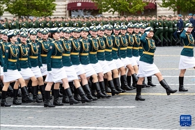 5月9日,在俄羅斯首都莫斯科,女兵列隊(duì)走過紅場。新華社記者 白雪騏 攝