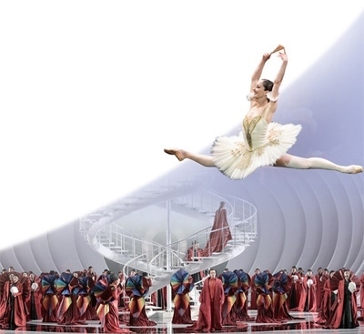 圖片從上至下依次為:國家大劇院外景。法國波爾多國家歌劇院芭蕾舞團演出照。國家大劇院制作古諾歌劇《羅密歐與朱麗葉》劇照。以上圖片均為國家大劇院提供