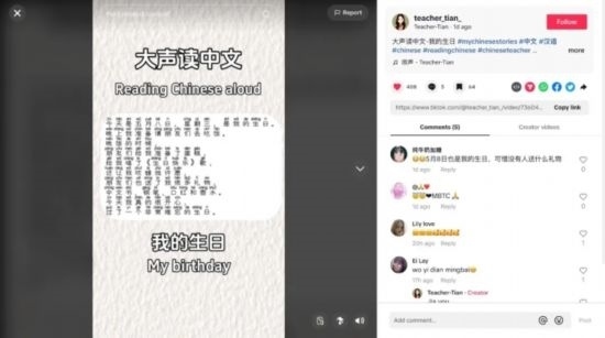 來自老撾的楊世群、菲律賓的黃玉潔、布隆迪的田曉慧和墨西哥的楊衍輝等老師,還分享了各種學(xué)習(xí)中文的有趣方法,例如情景演繹、唱歌學(xué)中文、跟讀練習(xí),獲得了網(wǎng)友們的一致好評。