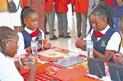 今年2月,在肯尼亞內(nèi)羅畢大學(xué)孔子學(xué)院舉辦的2024“歡樂春節(jié)之龍騰鼓躍鬧新春”活動上,當?shù)貙W(xué)生體驗中國剪紙。本報記者 黃煒鑫攝