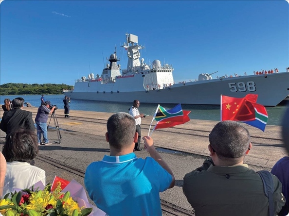 聯(lián)合演習(xí)開(kāi)始前一天,中國(guó)海軍日照艦抵達(dá)南非理查茲灣港口,受到歡迎