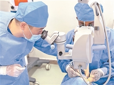 “光明行”項(xiàng)目專家團(tuán)隊(duì)正在為當(dāng)?shù)鼗颊邔?shí)施白內(nèi)障手術(shù)。