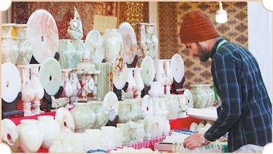 參觀者在雅礱物交會(huì)上選購(gòu)尼泊爾手工茶壺墊。