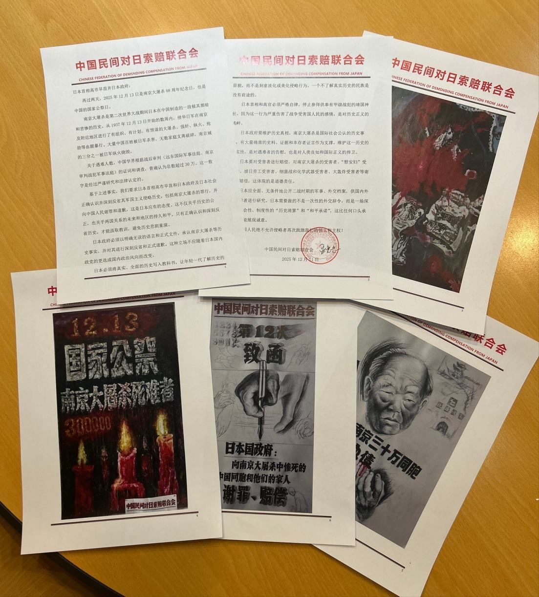 南京大屠殺88周年之際,中國(guó)民間對(duì)日索賠聯(lián)合會(huì)通過日本駐華大使館,致信日本政府及首相高市早苗,要求就南京大屠殺的罪行向中國(guó)人民謝罪并賠償。