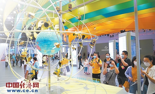 9月5日,觀眾在2020服貿會綜合展區(qū)觀看北斗衛(wèi)星模型。經(jīng)濟日報-中國經(jīng)濟網(wǎng)記者趙晶攝