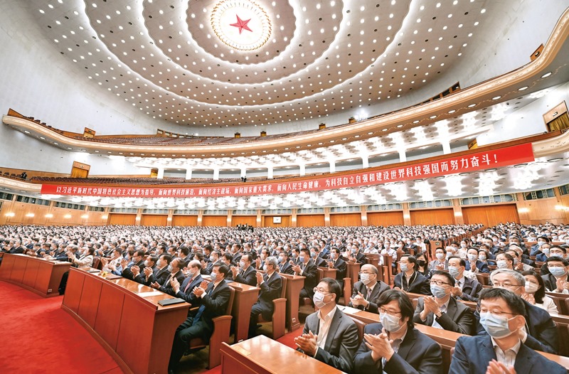 2021年5月28日,中國科學院第二十次院士大會、中國工程院第十五次院士大會和中國科學技術協(xié)會第十次全國代表大會在北京人民大會堂隆重召開。圖為大會現(xiàn)場。新華社記者李響/攝