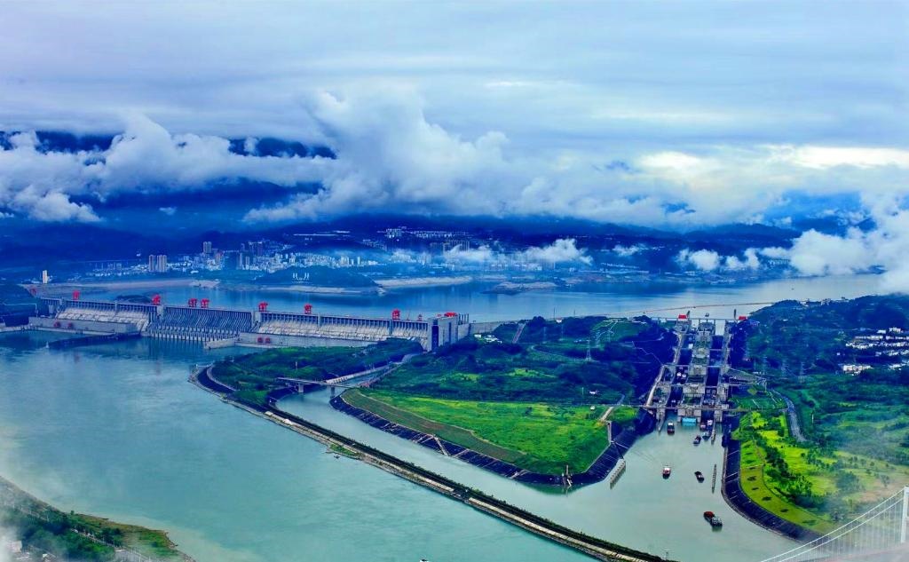 三峽水利樞紐工程全景鳥瞰(左邊為三峽大壩,右邊為船閘)。三峽集團(tuán)流域管理中心供圖