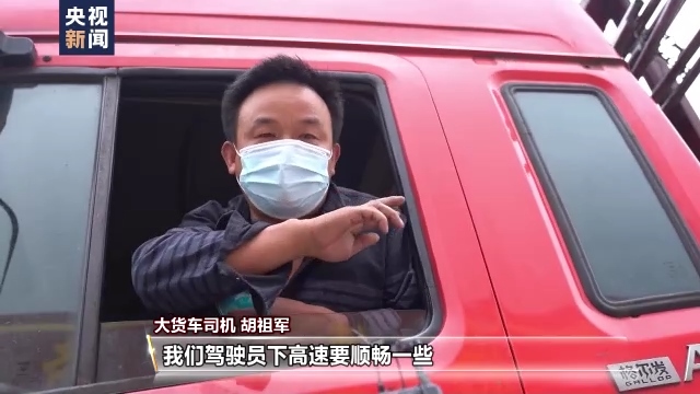 大貨車司機(jī) 胡祖軍:有這個(gè)長行碼了,駕駛員下高速要順暢一些,不會超過十分鐘的。