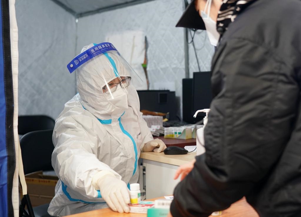 近日,為方便發(fā)熱患者就醫(yī),保障群眾就醫(yī)需求,北京市部分醫(yī)院在體育館里開(kāi)設(shè)簡(jiǎn)易發(fā)熱門診,為市民提供診療、開(kāi)藥等服務(wù)。新華社記者 張晨霖 攝
