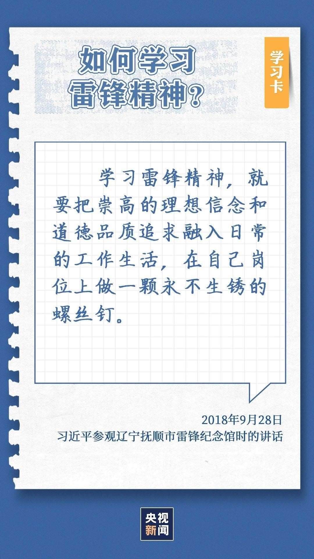 中共中央總書記、國家主席、中央軍委主席習近平近日作出重要指示指出,今年是毛澤東等老一輩革命家為雷鋒同志題詞60周年。60年來,學雷鋒活動在全國持續(xù)深入開展,雷鋒的名字家喻戶曉,雷鋒的事跡深入人心,雷鋒精神滋養(yǎng)著一代代中華兒女的心靈。實踐證明,無論時代如何變遷,雷鋒精神永不過時。在新時代新征程上,如何弘揚雷鋒精神?點擊學習卡↓