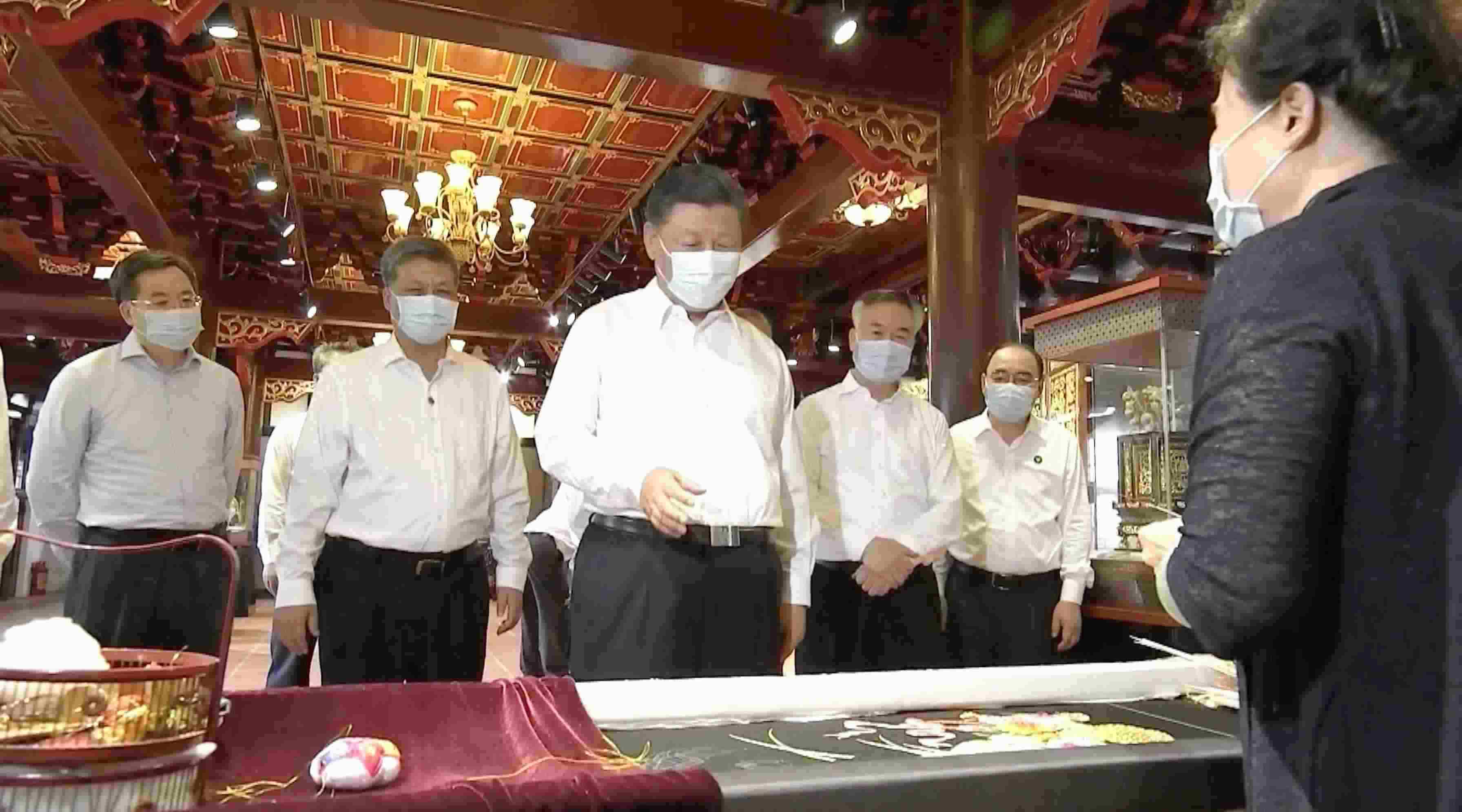 2020年10月,繡娘康惠芳在廣濟(jì)樓展廳內(nèi)見到前來考察的習(xí)近平總書記。