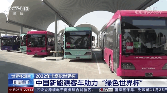 2022年卡塔爾世界杯期間,一輛輛五彩斑斕的大巴車,滿載球迷穿梭在首都多哈街頭。這些大巴車的很大一部分來自中國。這支中國新能源“綠色車隊”成為保障世界杯交通服務的主力軍。