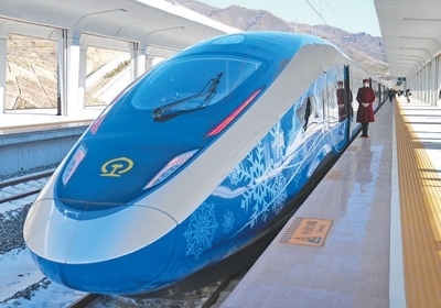 G9981次北京冬奧列車??吭诰埜哞F崇禮站。 新華社記者 鞠煥宗攝