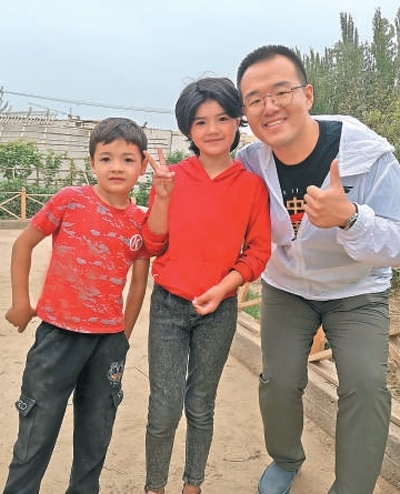 劉子鑫同于田縣青少年在一起。天津援疆前方指揮部供圖