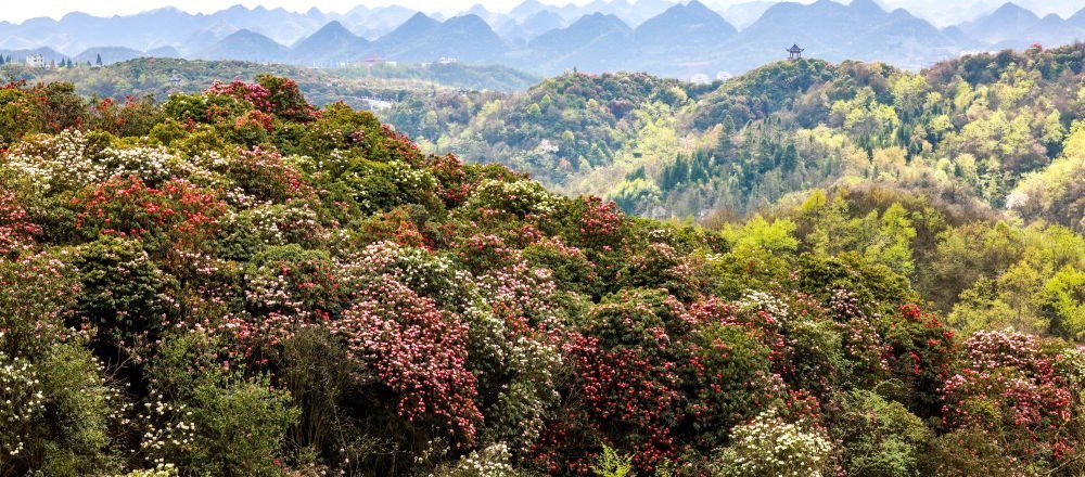 地處貴州畢節(jié)的百里杜鵑風(fēng)景名勝區(qū),每年花開(kāi)時(shí)節(jié)都會(huì)吸引游客前來(lái)觀賞。此處綿延分布了125.8平方公里的原始杜鵑林帶,是國(guó)家5A級(jí)旅游景區(qū)。