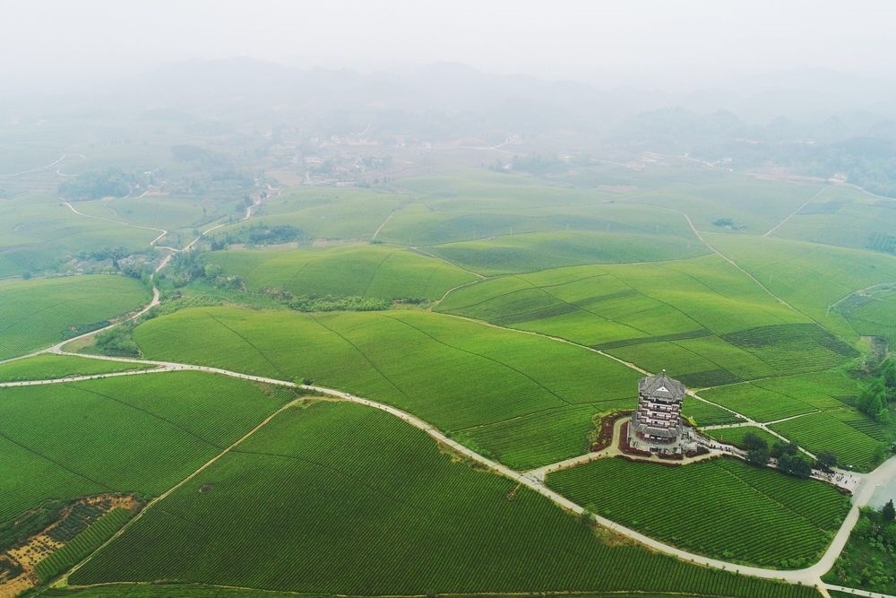 貴州省湄潭縣永興鎮(zhèn)萬(wàn)畝茶海(無(wú)人機(jī)照片,2021年4月12日攝)。新華社記者 劉續(xù) 攝