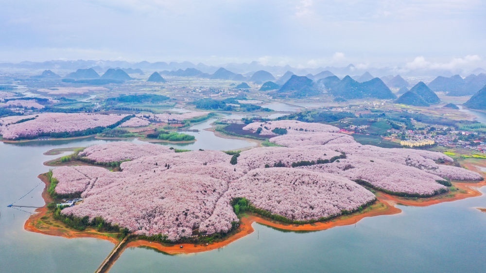 在貴安新區(qū)櫻花園,櫻花競(jìng)相盛開(kāi),游人如織。該園占地面積2.4萬(wàn)余畝,種植了近70萬(wàn)株名貴櫻花,是目前世界上集中連片種植面積最大的櫻花基地。
