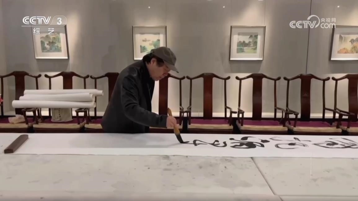 中國(guó)書(shū)法家協(xié)會(huì)草書(shū)專(zhuān)業(yè)委員會(huì)副主任、上海市書(shū)法家協(xié)會(huì)主席 丁申陽(yáng):武打的場(chǎng)面,他(導(dǎo)演)說(shuō)后面一堵墻,你可以用草書(shū)來(lái)書(shū)寫(xiě),掛在后面作背景。他說(shuō)這個(gè)草書(shū)跟武術(shù)其實(shí)有相同點(diǎn),都是動(dòng)態(tài)的美,也有左右避讓的關(guān)系,長(zhǎng)短的協(xié)調(diào)的關(guān)系,還有重輕的關(guān)系,矛盾平衡之間尋找一個(gè)點(diǎn),這個(gè)點(diǎn)就是協(xié)調(diào),協(xié)調(diào)就是美的。