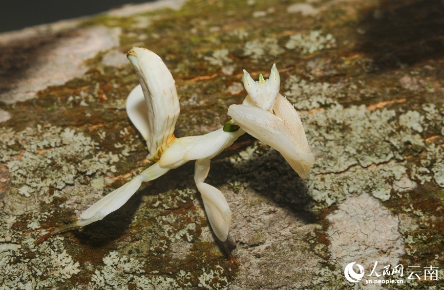 寧洱縣同心鎮(zhèn)林業(yè)和草原服務(wù)中心主任楊夢醒介紹,經(jīng)鑒定,這只白色的蟲子是昆蟲綱花螳科的一種動(dòng)物,名為蘭花螳螂,是螳螂目中最為漂亮的一種,比較稀有?!拔覀兺ㄟ^查閱資料發(fā)現(xiàn),蘭花螳螂在寧洱縣并無記錄,這次是首次發(fā)現(xiàn)?!?