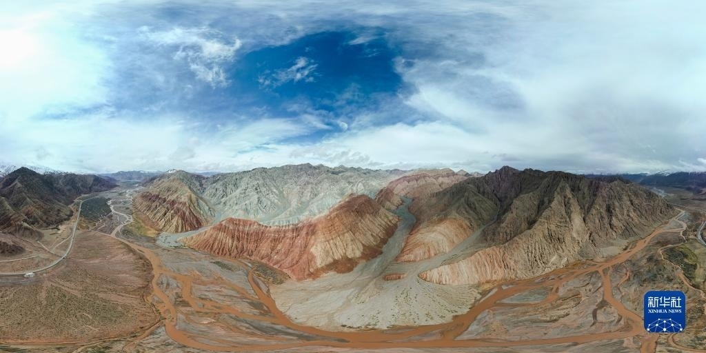 4月26日拍攝的天山-昆侖山交匯處(無人機全景照片)。