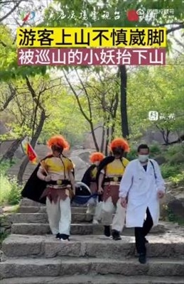 ·女子登山崴腳被巡山小妖抬下山,網(wǎng)友:享受了唐僧的待遇。