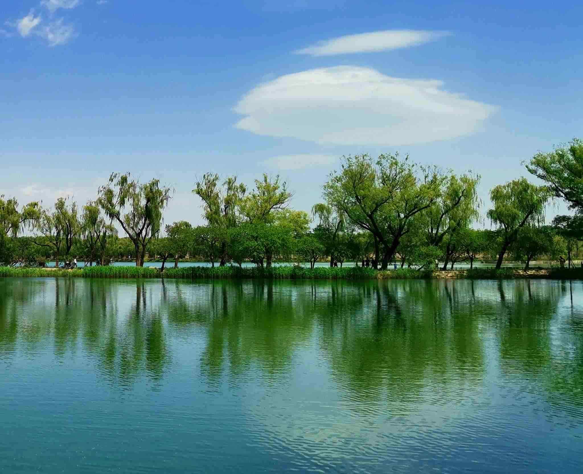 2023年4月29日,北京頤和園藍(lán)天白云、山青水秀,美不勝收。視覺(jué)中國(guó)
