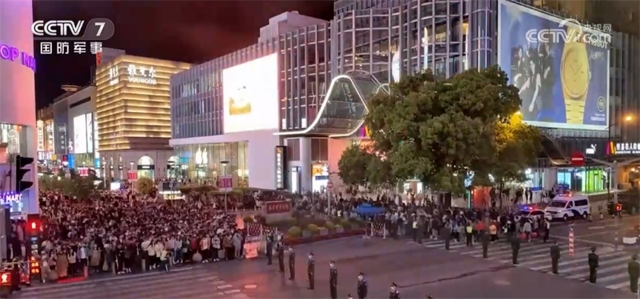 假期的上海外灘人流如織,單日累計(jì)客流量達(dá)到27萬(wàn)人左右,執(zhí)勤官兵組成拉鏈?zhǔn)饺藟?,引?dǎo)市民游客有序通過(guò)。