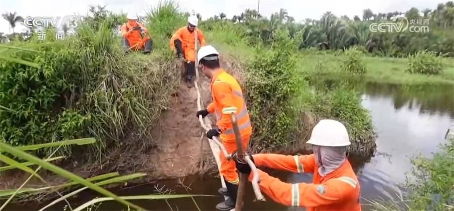在勘探過程中,工作人員會(huì)用不同顏色的飄帶進(jìn)行標(biāo)記,這種紅色的飄帶是代表保護(hù)樹種,禁止砍伐,藍(lán)色飄帶則指示著項(xiàng)目的路線。這些飄帶全都是用可降解材料制成的,在勘探任務(wù)結(jié)束后,還會(huì)有專門的小組對工區(qū)進(jìn)行垃圾回收和雨林恢復(fù)工作。目前,項(xiàng)目已經(jīng)完成了70%的工作量,預(yù)計(jì)7月中旬可以順利竣工。一年多來,項(xiàng)目多次接受當(dāng)?shù)丨h(huán)保等部門的各項(xiàng)檢查,每一次審計(jì)和檢測都收到了相關(guān)方非常高的評價(jià)。