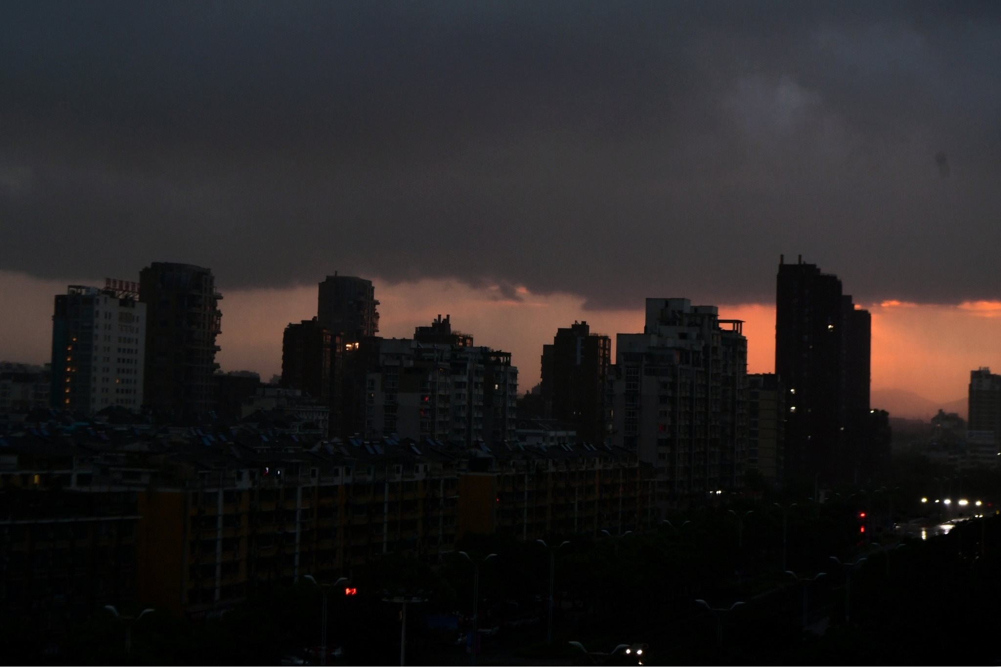 浙江金華遭遇強(qiáng)對(duì)流天氣 天空烏云密布