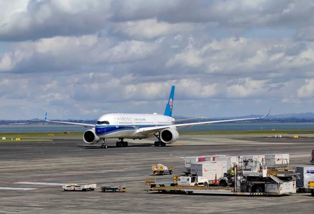 3月3日,搭載中國團隊游客的中國南方航空公司班機抵達新西蘭奧克蘭國際機場。新華社發(fā)(程麒麟 攝)