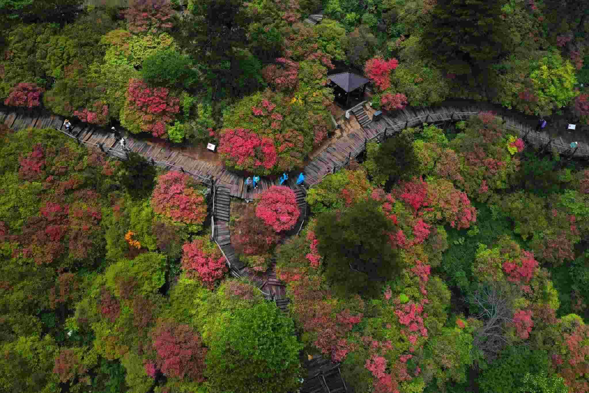 2023年5月5日,湖北黃岡,龜峰山杜鵑花綻放。視覺(jué)中國(guó)