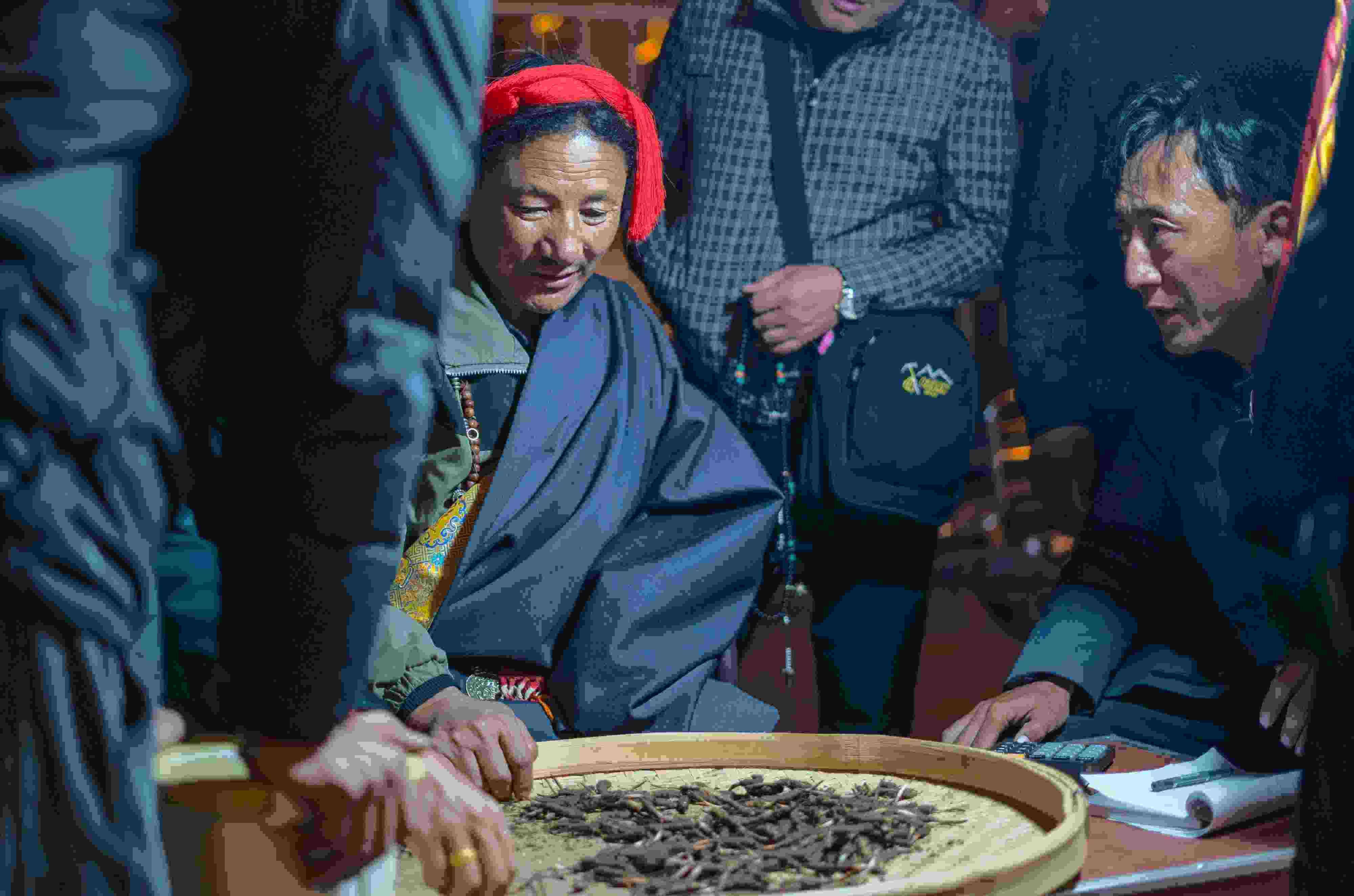 2023年5月6日,西藏山南,加查縣的冬蟲(chóng)夏草交易現(xiàn)場(chǎng)。 視覺(jué)中國(guó)