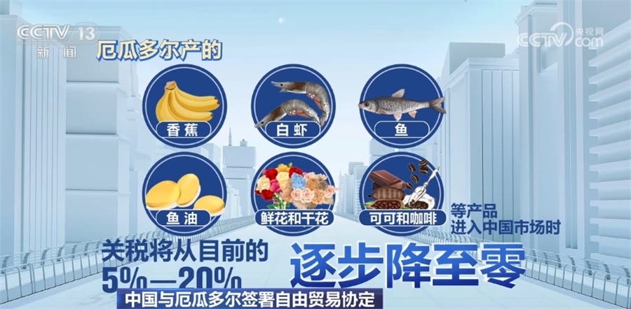央視網(wǎng)消息:昨天(5月11日),中國(guó)與厄瓜多爾正式簽署自由貿(mào)易協(xié)定,這是厄瓜多爾和亞洲國(guó)家簽署的首個(gè)自貿(mào)協(xié)定。