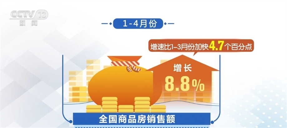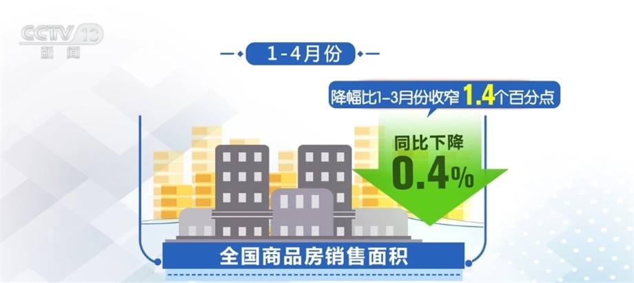 從銷售看,隨著政策效應(yīng)逐步顯現(xiàn),以及前期疫情積累的需求釋放,1—4月份,全國商品房銷售面積同比下降0.4%,降幅比1—3月份收窄1.4個百分點。銷售額增長8.8%,增速比1—3月份加快4.7個百分點。