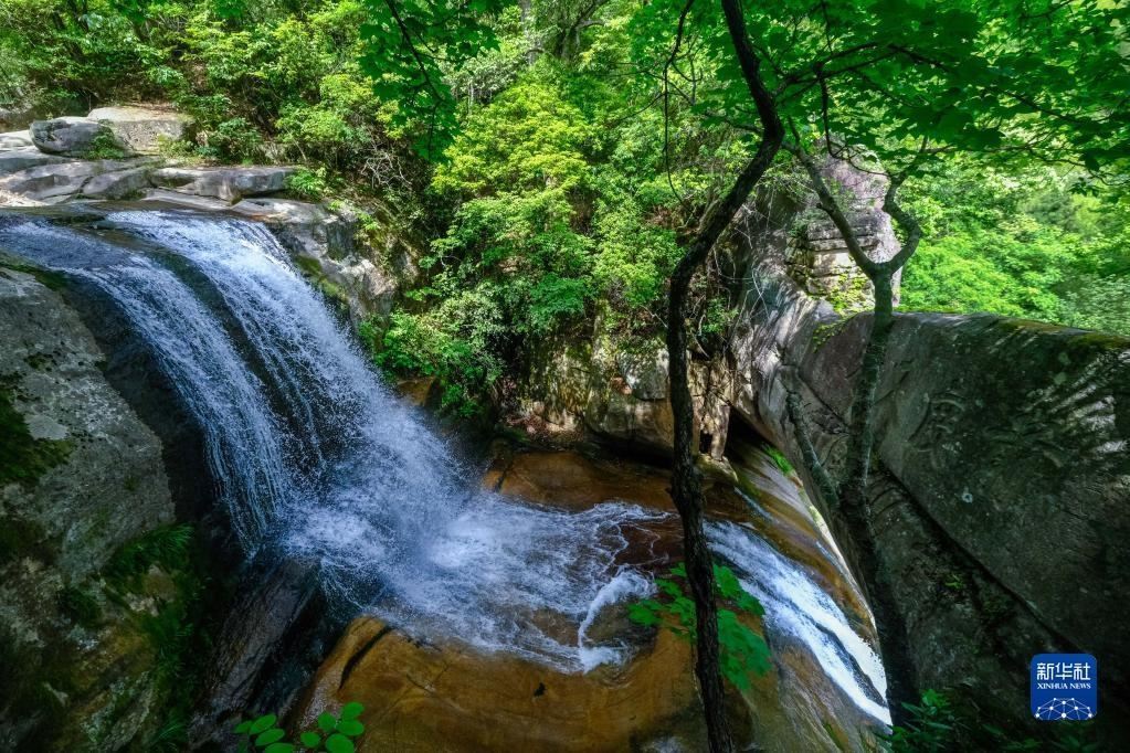 天臺山瓊臺仙谷景區(qū)(5月16日攝)。徐霞客在游記中寫道:“峰頭中斷,即為雙闕;雙闕所夾而環(huán)者,即為瓊臺。”