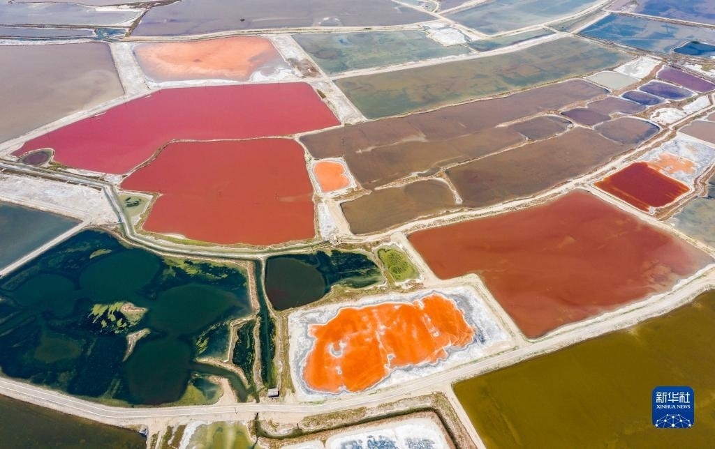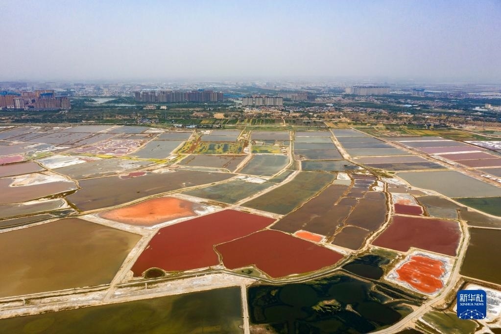 這是5月16日拍攝的運城鹽湖一景(無人機(jī)照片)。