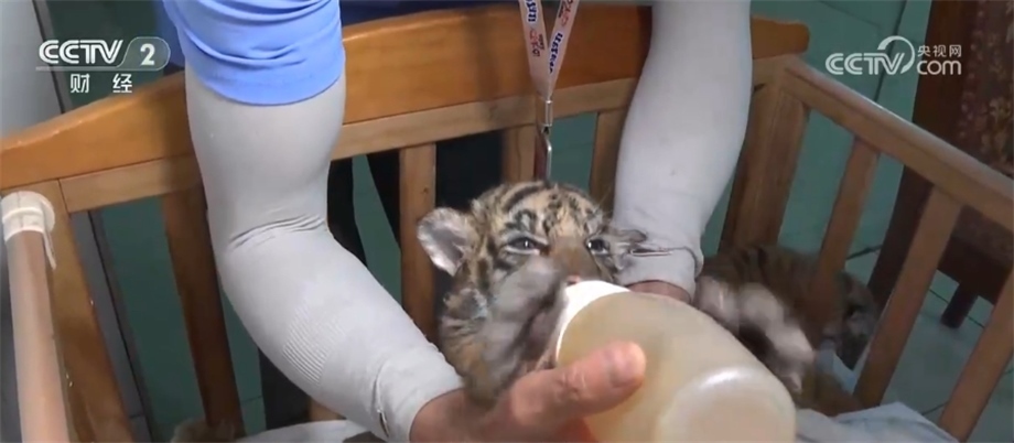 據(jù)了解,這5只虎寶寶兩只雄性三只雌性。由于虎媽媽年齡偏大、體質(zhì)偏弱,加之習(xí)性暴躁,在產(chǎn)下5只虎寶寶后不久便不再照顧它們。5只虎寶寶生命體征極其脆弱,隨時(shí)可能夭折,為此,飼養(yǎng)員采取了人工哺乳方式進(jìn)行喂養(yǎng)。