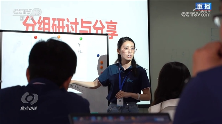 李社林:“老師到我們這里來培訓(xùn),他能得到的是現(xiàn)在行業(yè)里面大家在用什么,企業(yè)在關(guān)注什么,他回到學(xué)校之后會讓學(xué)生清楚,現(xiàn)在哪一部分人受歡迎,該學(xué)哪方面的技術(shù),怎么就這個技術(shù)做訓(xùn)練?!?/p>