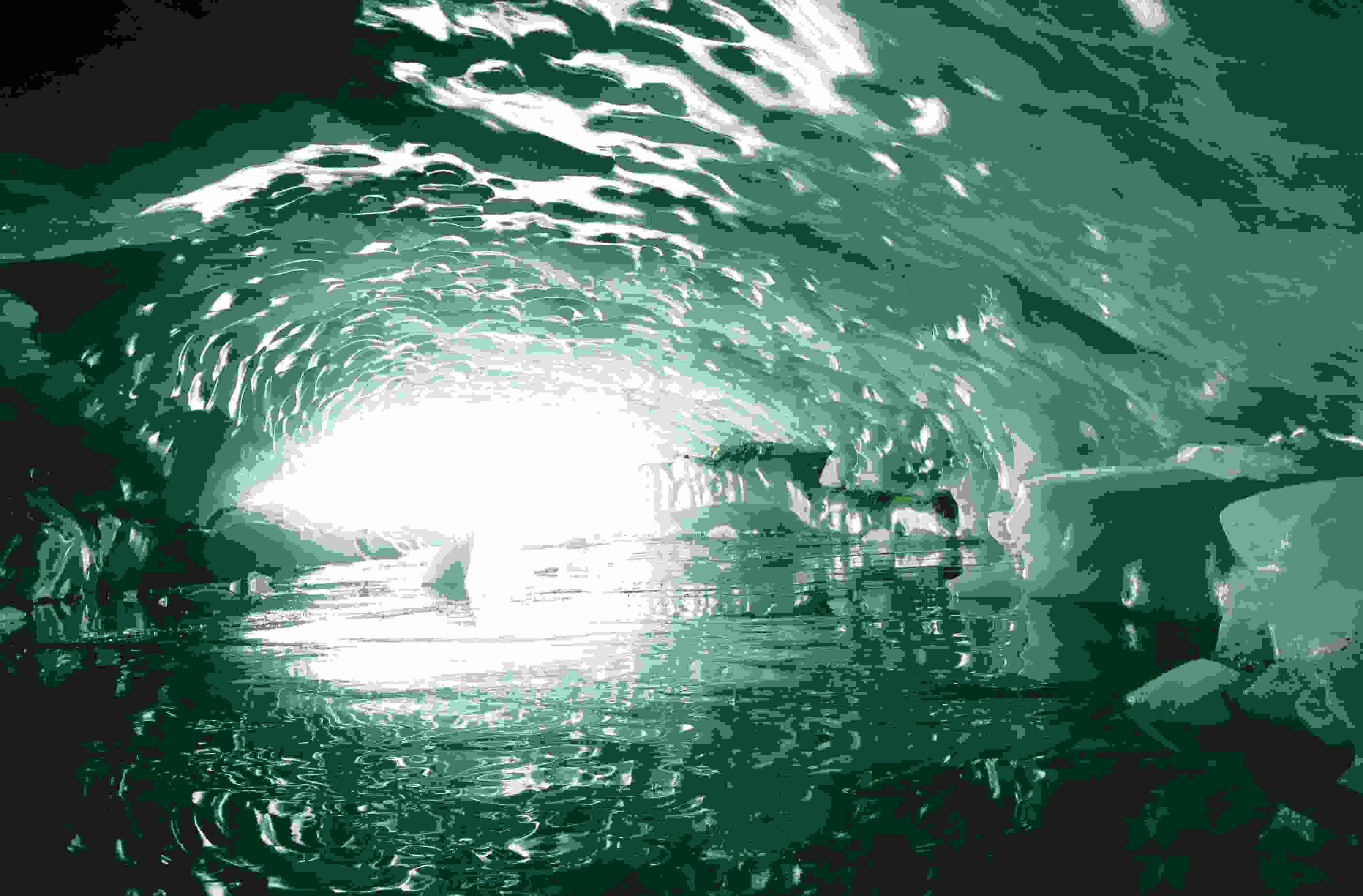 2023年5月21日,西藏昌都,游客在邊壩縣普玉一村游覽冰洞。據(jù)初步勘測,貫穿的冰洞長約165米、寬約26米、高約15米。呈弧拱造型的冰洞內(nèi)壁上皆是晶瑩剔透的冰柱、冰簾、冰花,其頂部呈“魚鱗”狀,在陽光的照射下,呈現(xiàn)出夢幻般的景象。 視覺中國