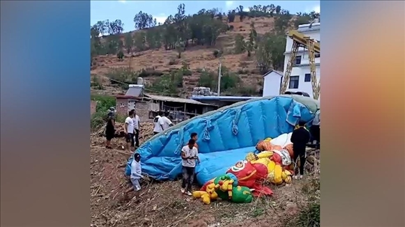 ·大理平川鎮(zhèn)一充氣城堡側翻,組織方:龍卷風突襲有小朋友受傷。