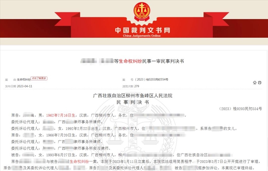 ·男子目睹前女友與人同居后自殺,法院:女方處理情感糾紛有不妥之處,補償男子父母2萬。