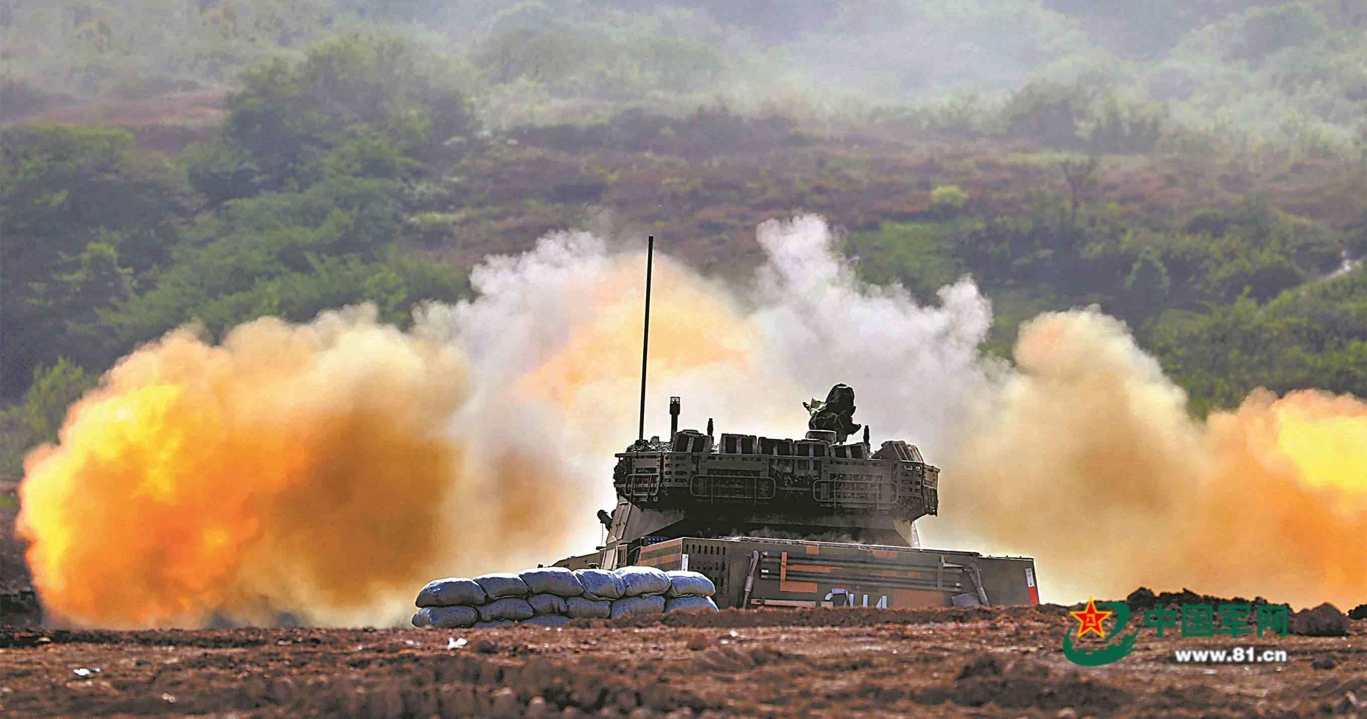 戰(zhàn)機(jī)稍縱即逝,偵察隊(duì)員立即向指揮所報(bào)告情況并呼叫炮火支援。各戰(zhàn)斗小組快速分發(fā)彈藥,戰(zhàn)車(chē)迅即駛向預(yù)備陣地?!澳繕?biāo)鎖定,射擊!”剎那間,一發(fā)發(fā)炮彈呼嘯著撲向“敵”陣地。