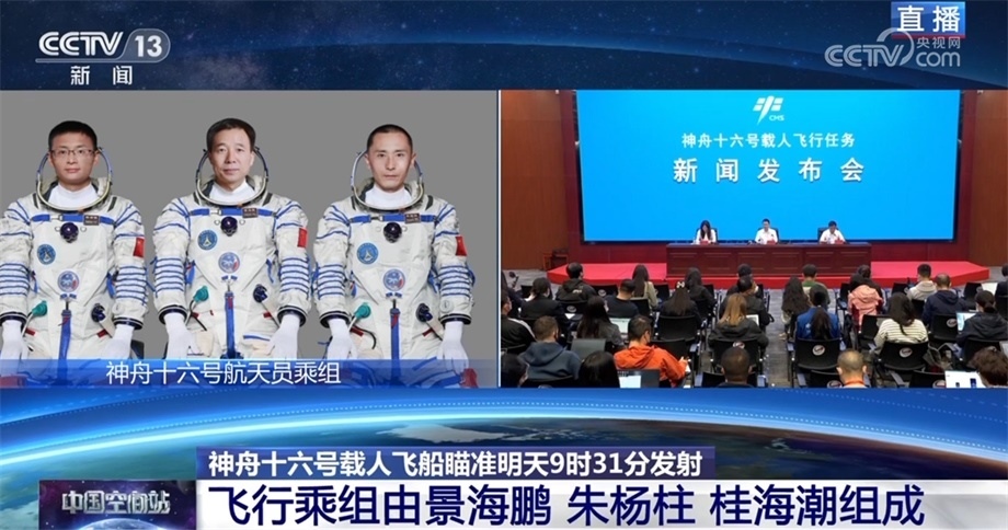 中國載人航天工程辦公室副主任、工程新聞發(fā)言人 林西強(qiáng):受任務(wù)總指揮部委托,由我向大家介紹神舟十六號載人飛行任務(wù)有關(guān)情況。經(jīng)總指揮部研究決定,瞄準(zhǔn)北京時(shí)間5月30日9時(shí)31分發(fā)射神舟十六號載人飛船,飛行乘組由航天員景海鵬、朱楊柱和桂海潮組成,景海鵬擔(dān)任指令長。航天員景海鵬先后參加過神舟七號、九號、十一號載人飛行任務(wù),朱楊柱和桂海潮都是首次飛行。目前,執(zhí)行此次發(fā)射任務(wù)的長征二號F遙十六火箭即將開始加注推進(jìn)劑。